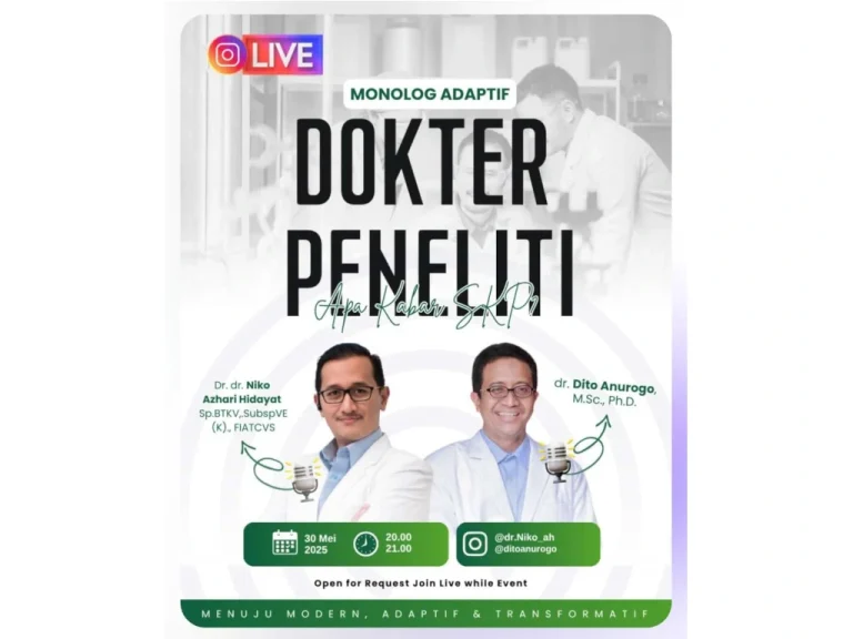 Dunia kini bergerak cepat melalui teknologi. Sektor kesehatan idealnya juga terus berinovasi. Kita membutuhkan lebih dari sekadar tenaga medis yang terampil. Kita memerlukan arsitek ilmu pengetahuan yang mampu menjembatani antara praktik klinis dan riset. Mereka adalah dokter peneliti. Sosok ini tidak hanya mengobati hari ini, tetapi juga merancang solusi futuristik. Namun di Indonesia, dokter peneliti